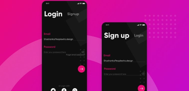 Shashank Mahajan created this new XD freebie and shared it with the community. These are some free login/sign-up screens that use a dark mode UI. Made for you in Adobe XD. Thanks for sharing.